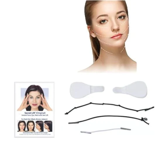 3. Este estiramiento facial es altamente efectivo, fácil de usar, invisible.Simplemente pegue un extremo de la cinta en la piel de nuestra cara, luego tire hacia atrás la piel hasta 3 a 4 pulgadas y empuje hacia abajo, y el resultado entra en efecto inmediatamente.