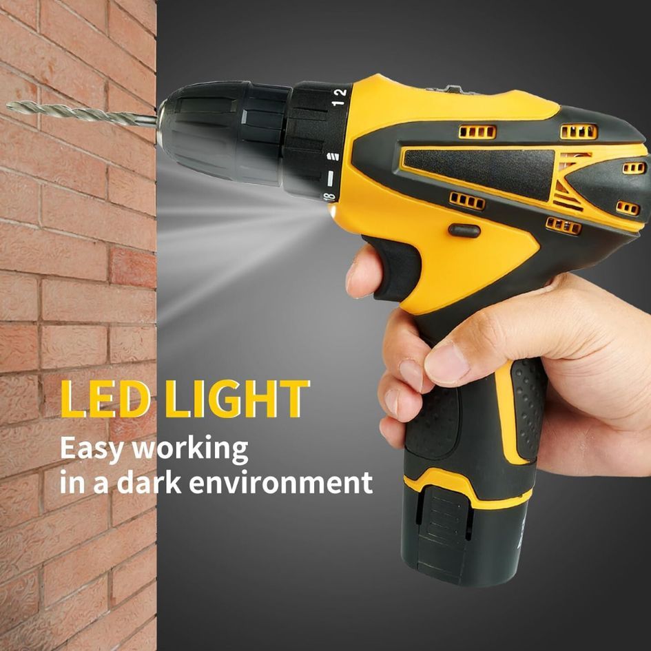➤Empacado con 2 baterías, larga vida útil: Nuestros taladros inalámbricos están equipados con 2 baterías y cargador, lo que hace que las puntas de los destornilladores inalámbricos estén listas para usar sin limitaciones, brindándole más comodidad.
