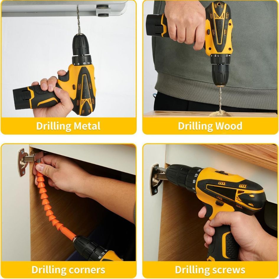 ➤Amplias aplicaciones: El taladro inalámbrico es un taladro ideal para madera, metal y plástico para colgar cuadros, montar o reparar muebles, apretar tornillos y muchos otros proyectos de bricolaje y manualidades.