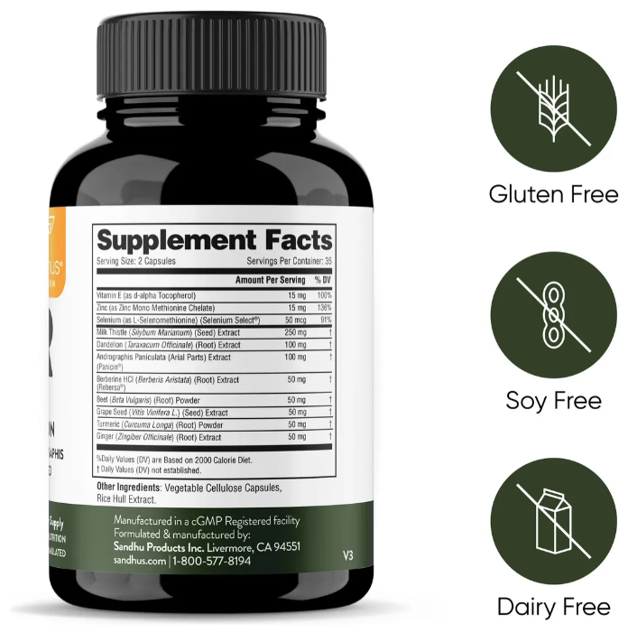 Repleto de antioxidantes y fabricado con extracto de cardo mariano altamente estandarizado. Mejorado con hierbas amigables con el hígado como diente de león, remolacha, andrografía y berberina, además de oligoelementos esenciales como zinc y selenio de alta absorción.